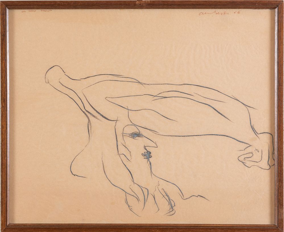 PIRRO CUNIBERTI (Sala Bolognese 1923 - Bologna 2016) "Un uomo robusto", 1966. Tecnica mista su carta. Cm 36x45. Opera firmata e datata in alto a destra Cuniberti '66. Opera intitolata in alto a sinistra un uomo robusto.