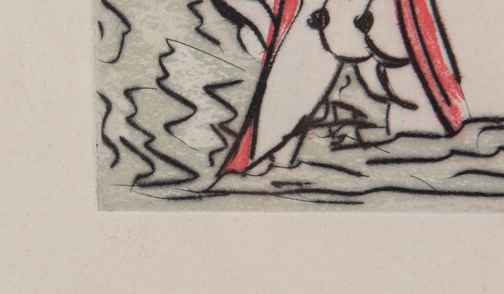 TONO ZANCANARO (Padova 1906 - 1985) "Senza titolo". Litografia a colori su carta. Lastra: cm 29x35. Opera firmata in basso a destra Tono. Reca numeri di tiratura in basso a sinistra 29/90.