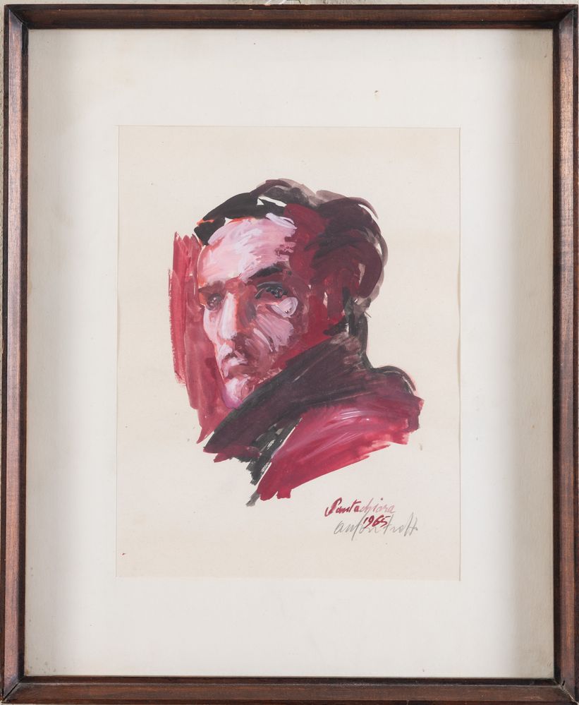 CARLO SANTACHIARA (Reggiolo 1937 - Bologna 2000) "Autoritratto", 1965. Tecnica mista su carta. Cm 29,5x22,5. Opera firmata, datata e intitolata in basso a destra Carlo Santachiara 1965 Autoritratto.