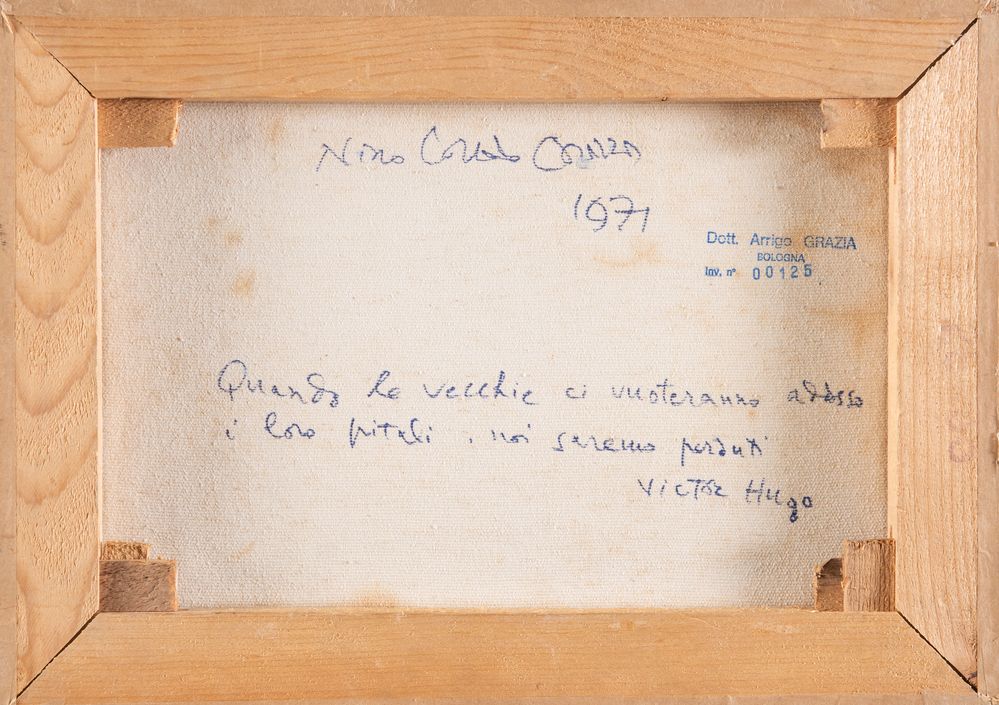 NINO CORRADO CORAZZA (Bologna 1897 - 1975) "Senza titolo", 1971. Olio su tela. Cm 25,5x35,3. Al retro opera firmata e datata Nino Corrado Corazza 1971.