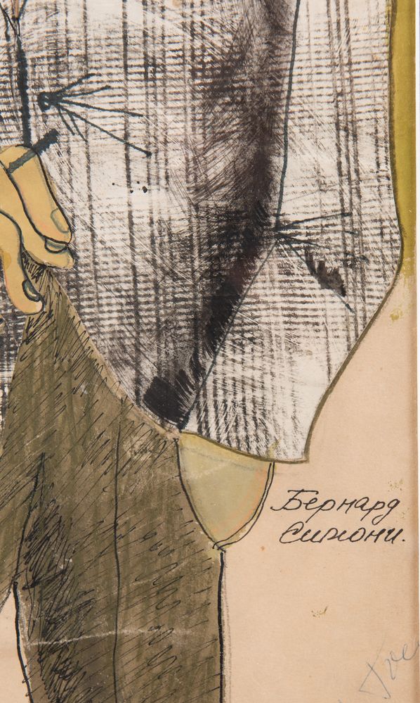 Artista russo del XX secolo. "Gigolo' - Bernard Sinon", anni '20. Tecnica mista su cartoncino. Cm 40x19,5. Opera firmata in basso a destra. Opera accompagnata da expertise a firma Cesare Lisandria, esperto in Arte Russa.