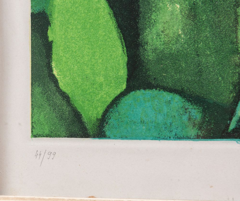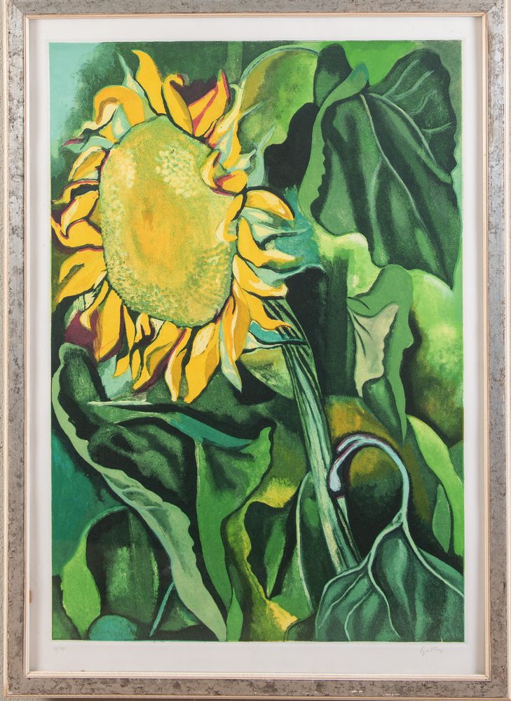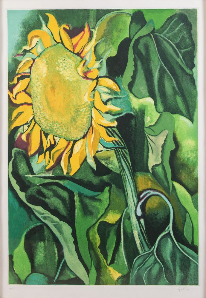 RENATO GUTTUSO (Bagheria 1911 - Roma 1987) "Girasole". Litografia a colori su carta. Foglio: cm 95x68. Opera firmata in basso a destra Guttuso. Reca numeri di tiratura in basso a sinistra 44/99.