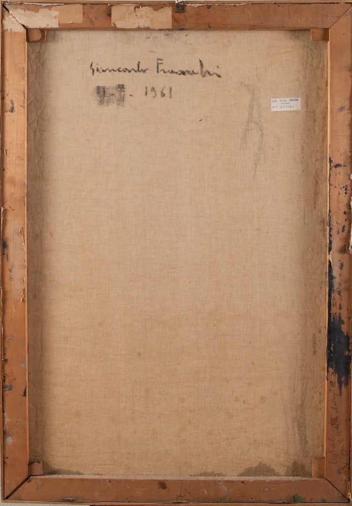 GIANCARLO FRANCHI (1929 - ?) "Senza titolo", 1961. Olio su tela. Cm 100,5x70,7. Opera firmata in basso a destra Franchi. Al retro opera e datata Giancarlo Franchi.