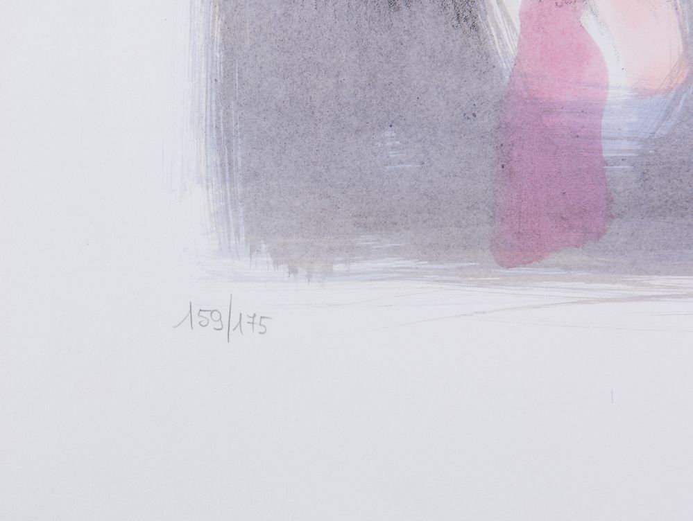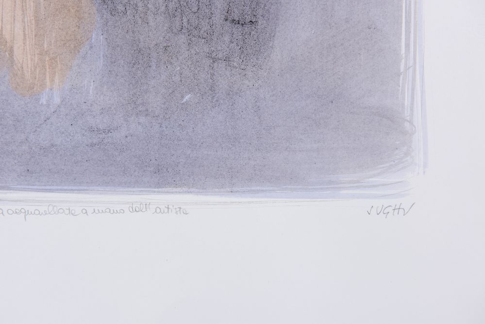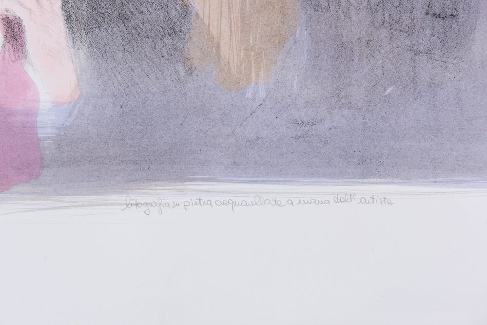 ALBERTO SUGHI (Cesena 1928 - Bologna 2012) "Senza titolo". Litografia a colori su carta con intervento ad acqurello. Foglio: cm 80,5x60. Opera firmata in basso a destra Sughi. Reca numeri di tiratura in basso a sinistra 159/175.