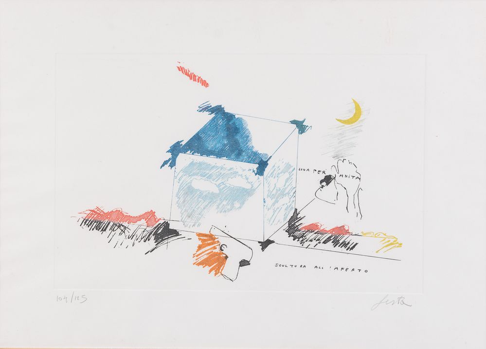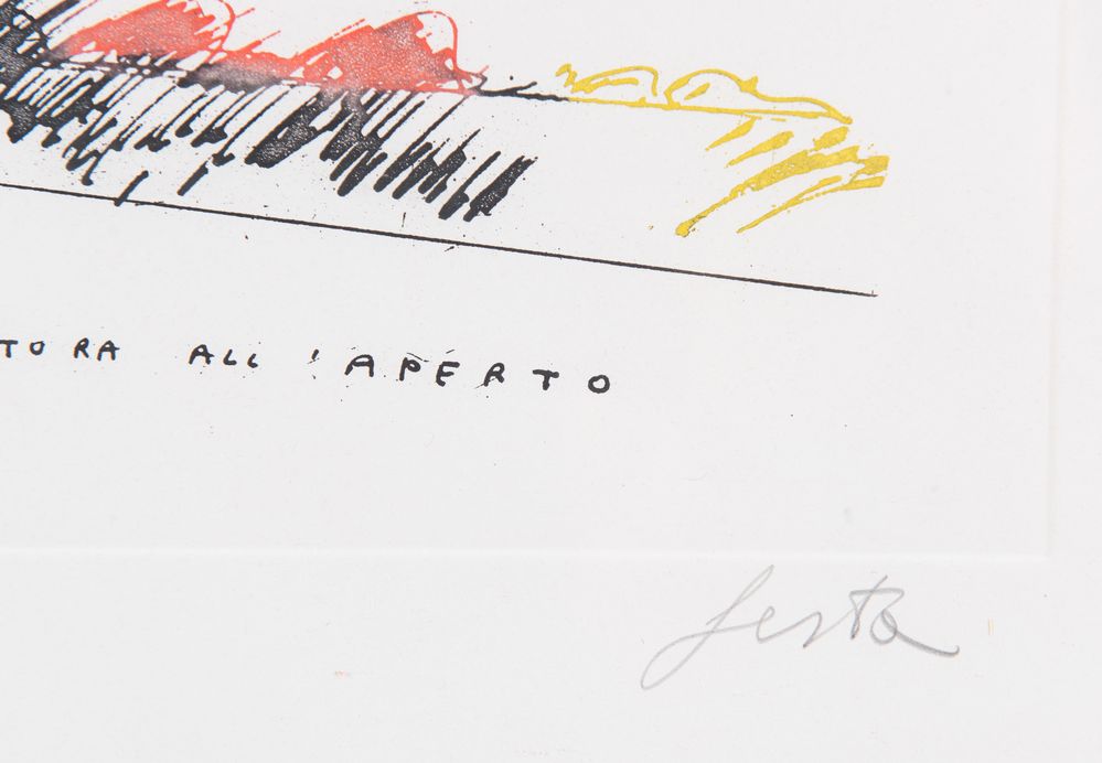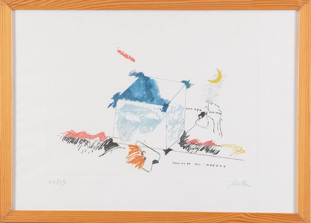 TANO FESTA (Roma 1938 - 1988) "Senza titolo". Litografia a colori su carta. Lastra: cm 32x49,5; foglio: cm 48x68. Opera firmata in basso a destra Festa. Reca numeri di tiratura in basso a sinistra 104/125.