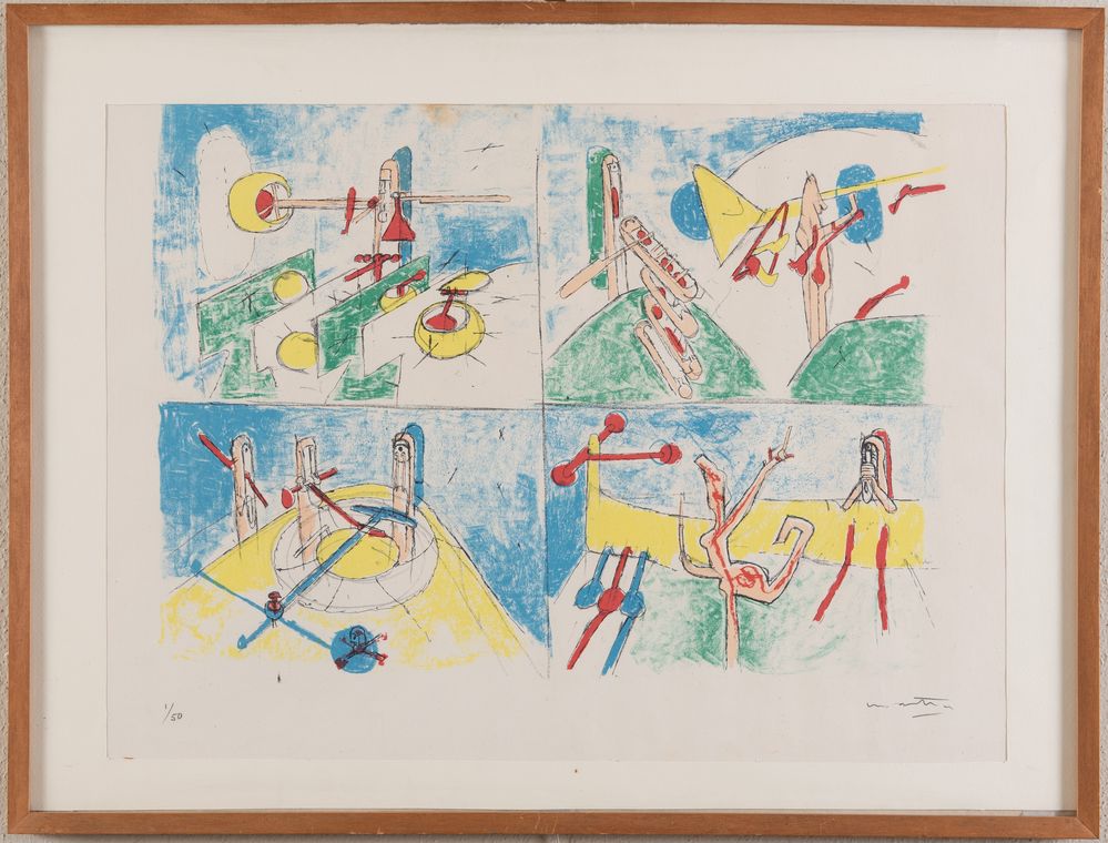 ROBERTO SEBASTIÁN MATTA (Santiago del Cile 1911 - Civitavecchia 2002) “Senza titolo”. Litografia a colori su carta. Cm 49x65. Opera firmata in basso a destra Matta. Reca numeri di tiratura in basso a sinistra 1/50.