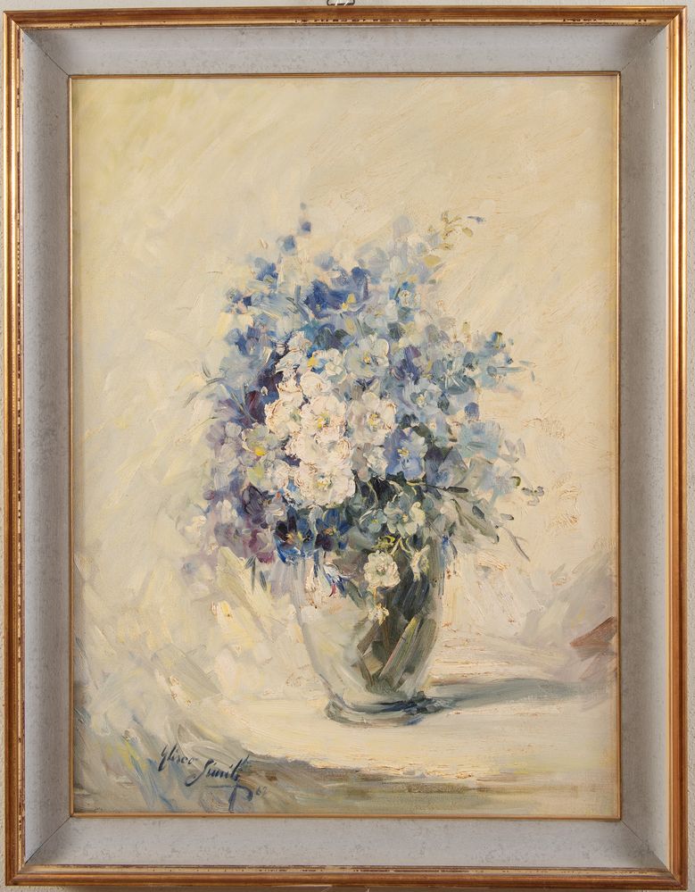 ELISEO SIMILI (1902 - 1983) "Vaso di fiori", 1962. Olio su tela. Cm 60x80. Opera firmata e datata in basso a sinistra Simili '62.