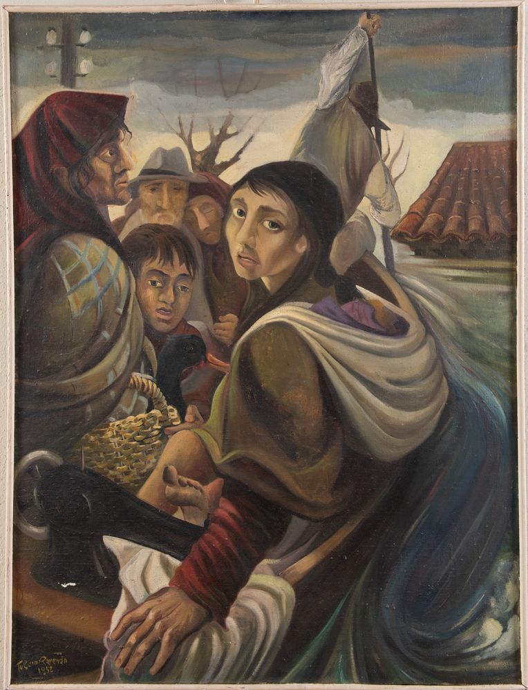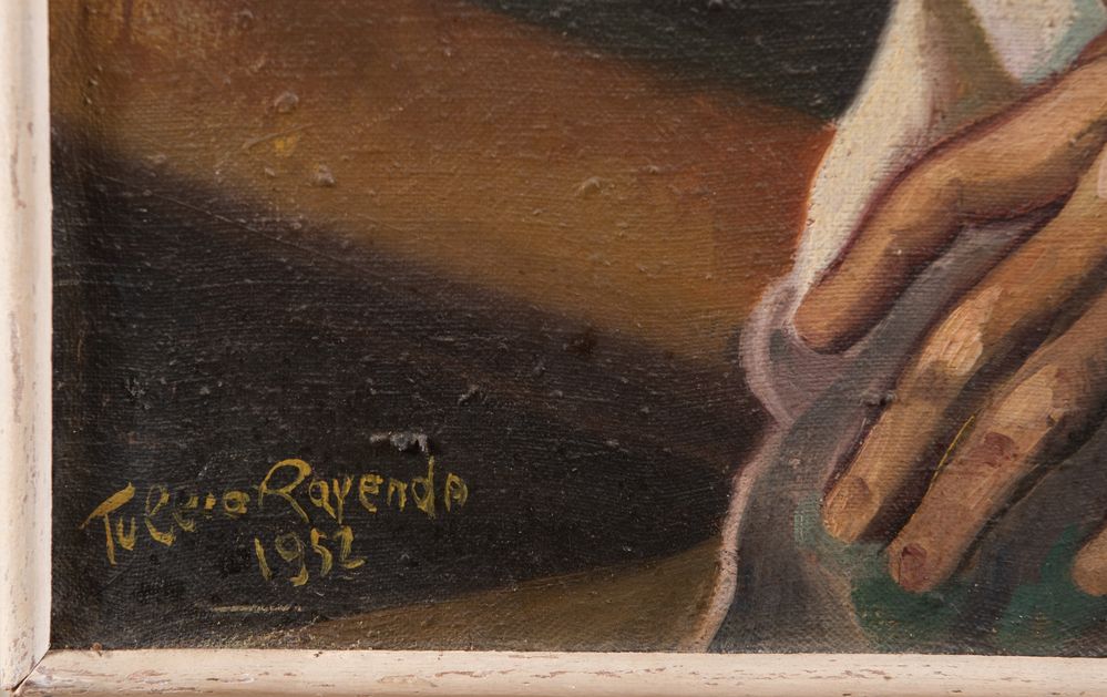 TULLIO RAVENDA (Verona 1928) "Senza titolo", 1952. Olio su tela. Cm 98x74,5. Opera firmata e datata in basso a sinistra Tullio Ravenda 1952.