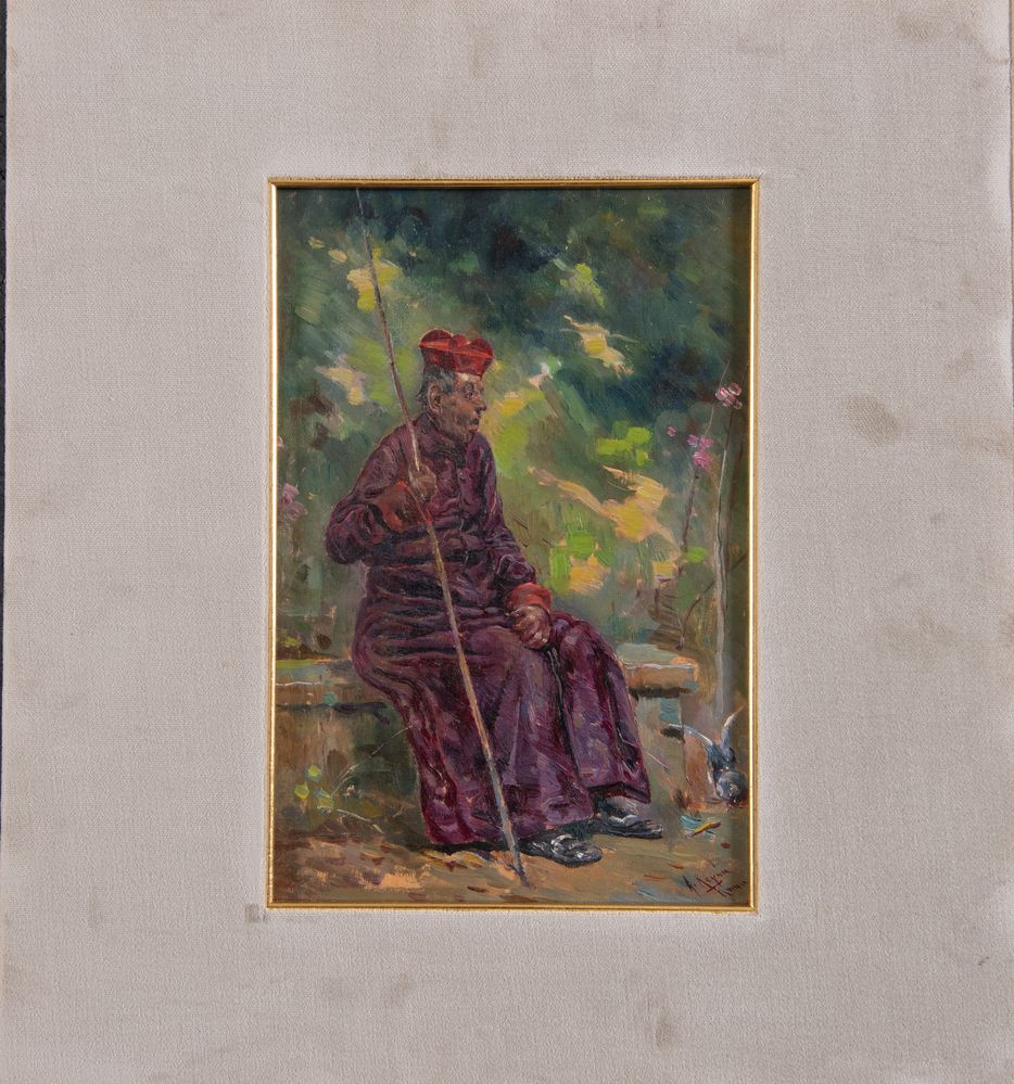 Antonio REYNA MANESCAU (1859-1937) "Prete". Olio su tavola. Cm 23,5x16. Opera...
