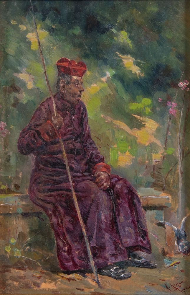 Antonio REYNA MANESCAU (1859-1937) "Prete". Olio su tavola. Cm 23,5x16. Opera firmata in basso a destra A. Reyna Roma.