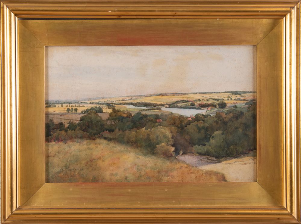 ALFRED EAST (1849 - 1913) "Paesaggio". Acquerello su cartone. Cm 32x50. Opera firmata in basso a sinistra Alfred East R. A.