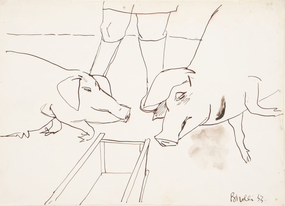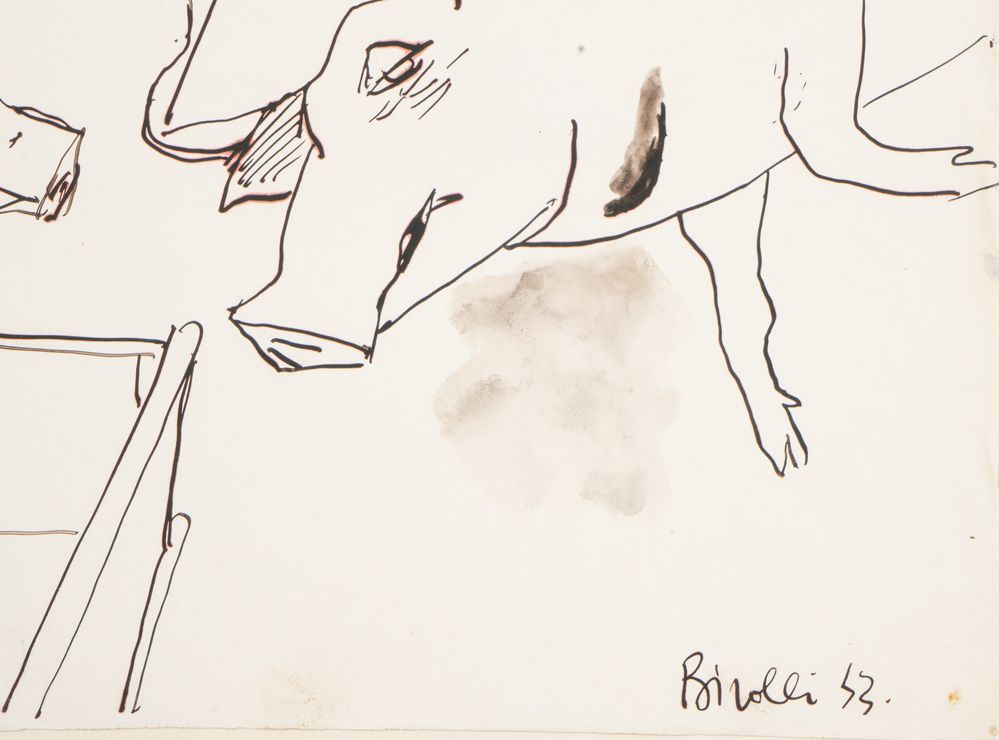 RENATO BIROLLI (Verona 1905 - Milano 1959) "Senza titolo", 1943. China su carta. Cm 23x32. Opera firmata e datata in basso a destra Birolli 43. Al retro reca timbro della Galleria dell'Annunciata, Milano. Provenienza: Galleria dell'Annunciata, Milano.