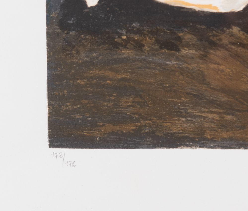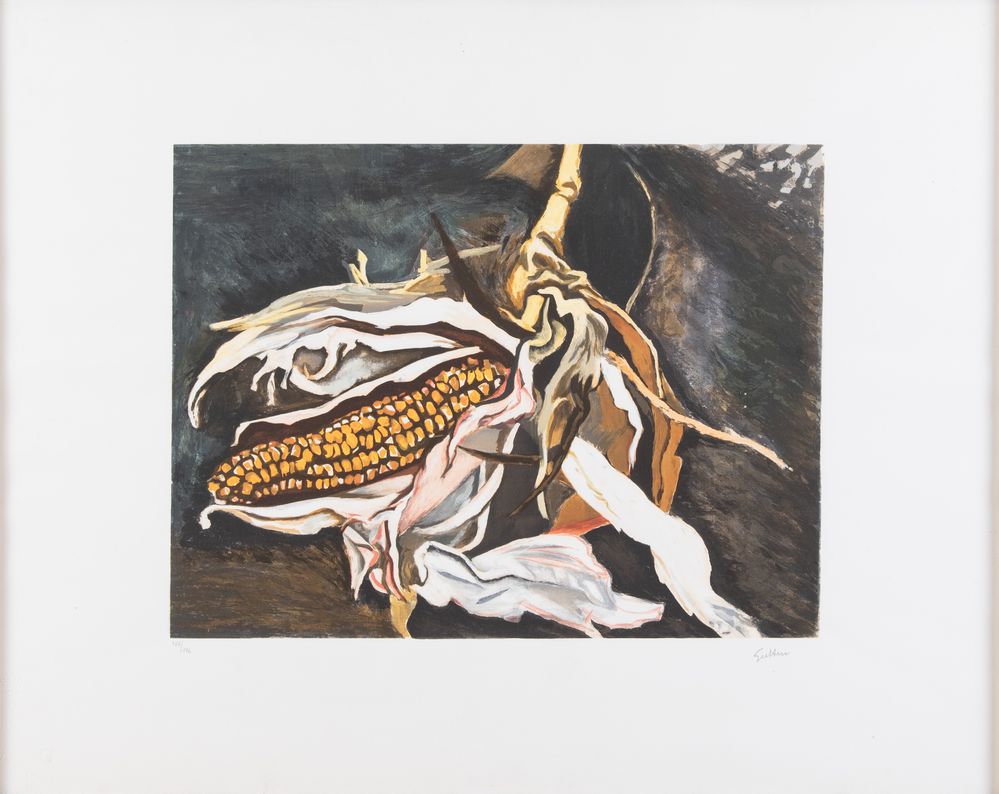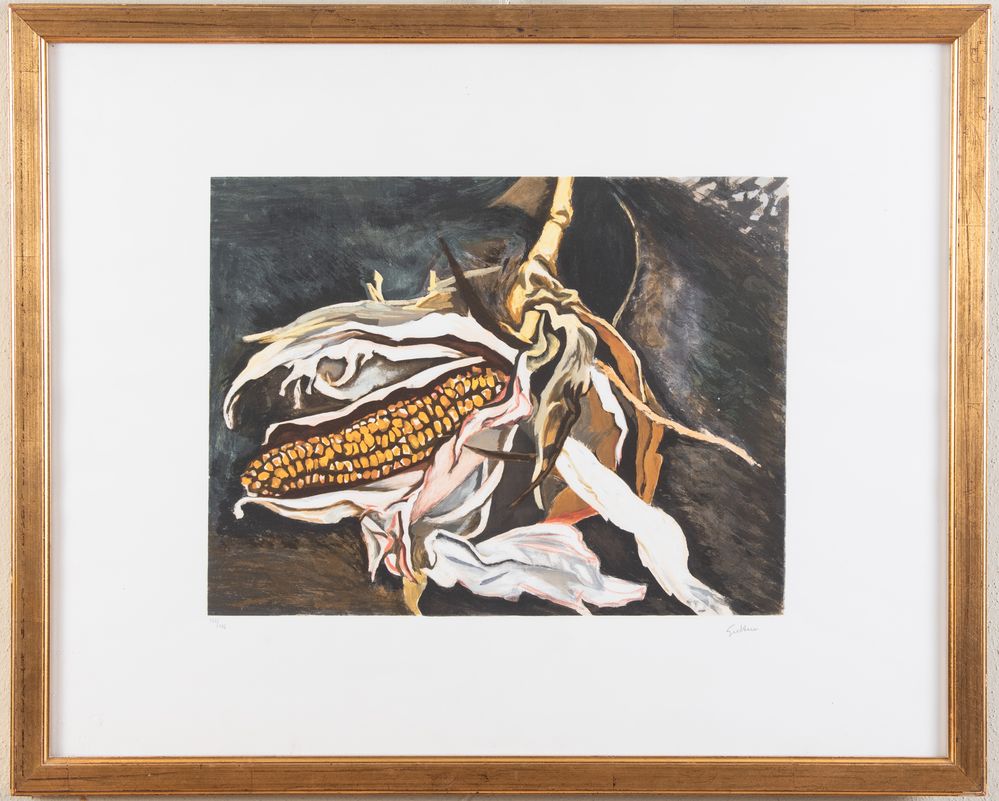 RENATO GUTTUSO (Bagheria 1911 - Roma 1987) "Pannocchia". Litografia a colori su carta. Lastra: cm 37,5x50; foglio: cm 63x80. Opera firmata in basso a destra Guttuso. Reca numeri di tiratura in basso a sinistra 172/176. Reca in basso a sinistra quattro timbri a secco. Opera corredata da certificato di autenticità di Fade Arte, Bologna, in data 4 Dicembre 1987.