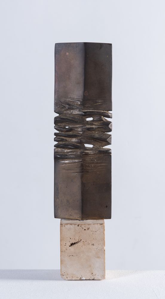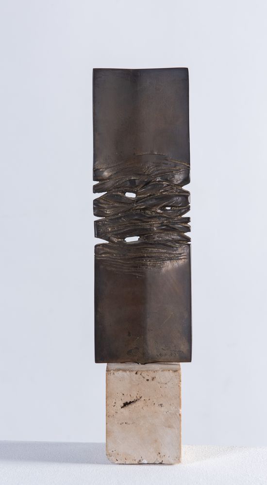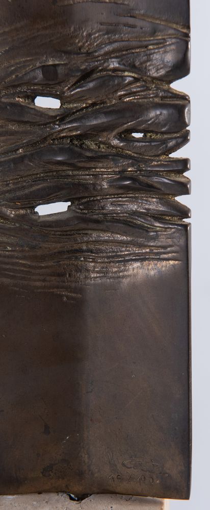 FRANCO CIUTI (Roma 1938) "Senza titolo". Scultura in bronzo su basamento in pietra. Cm (senza basamento): 25,5x7,6x2. Opera firmata in basso a destra Ciuti. Reca numeri di tiratura in basso a destra 18/100.