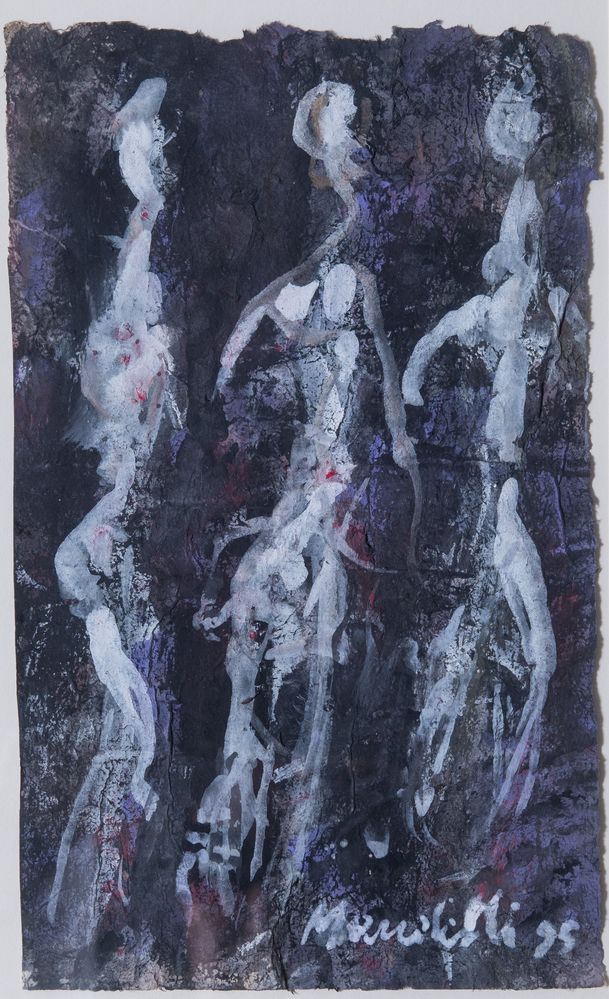 POMPILIO MANDELLI (Luzzara 1912 - Bologna 2006) "Mannequin", 1995. Acrilico su carta. Cm 33,5x20. Opera firmata e datata in basso a destra Mandelli '95.
