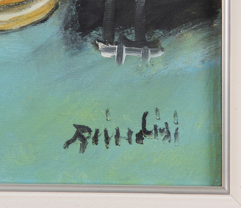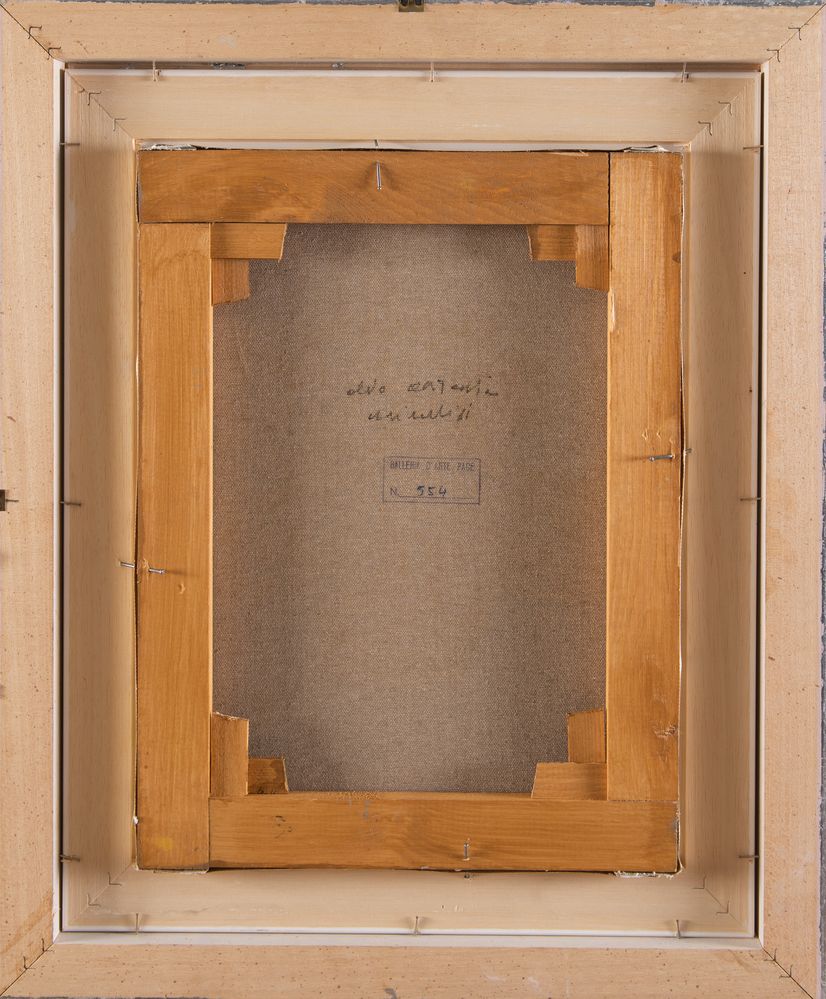 REMO BRINDISI (Roma 1918 - Lido di Spina 1996) "Senza titolo". Olio su tela. Cm 40x30. Opera firmata in basso a destra Brindisi. Al retro reca iscrizione per autentica e timbro della Galleria d'Arte Pace con n. 554. Opera accompagnata da autentica su fotografia con timbro della Galleria Pace, con n. 554.