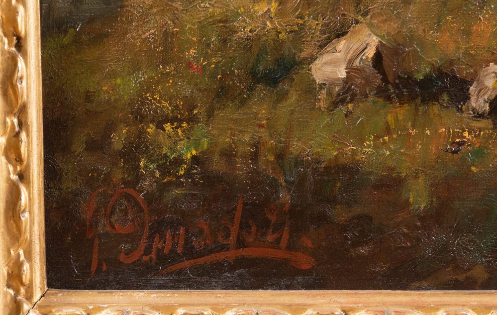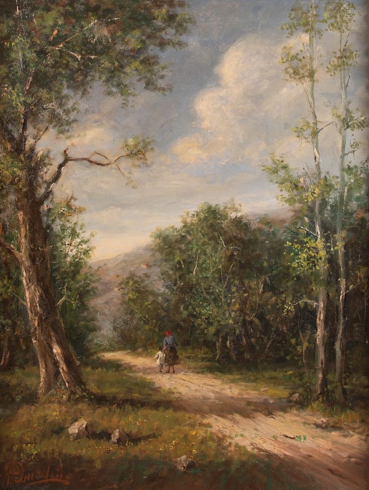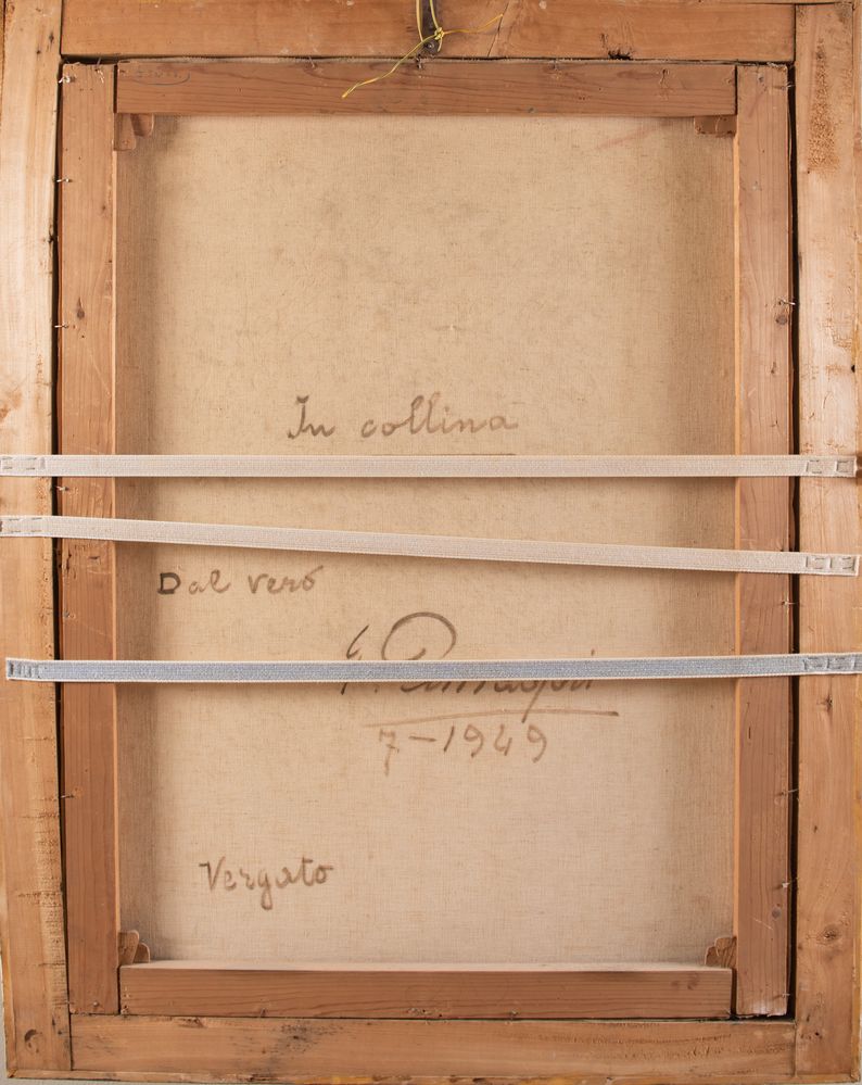 GIULIANO AMADORI (Bologna 1883 - 1972) "In collina, dal vero", 1949. Olio su tela. Cm 100x76. Opera firmata in basso a destra G. Amadori. Al retro opera firmata, datata e intitolata G. Amadori, In collina dal vero, 1949.