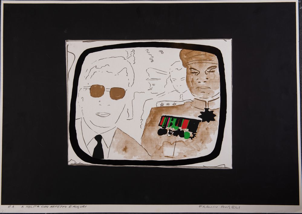 FRANCO ANGELI (Roma 1935 - Roma 1988) "Senza titolo". Litografia a colori su carta. Foglio: cm 49x69. Opera firmata in basso a destra Franco Angeli. Reca numeri di tiratura e dedica in basso a sinistra P.A.
