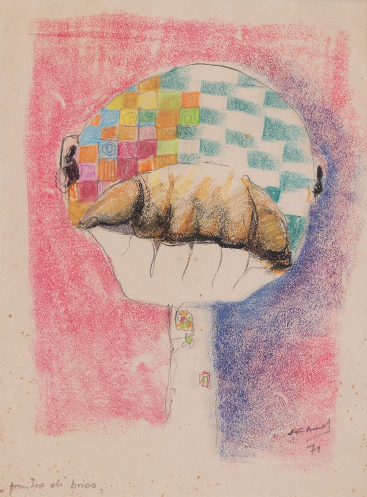 GODWIN EKHARD (1932-1995) "Fornitore di brios", 1971. Tecnica mista su carta....
