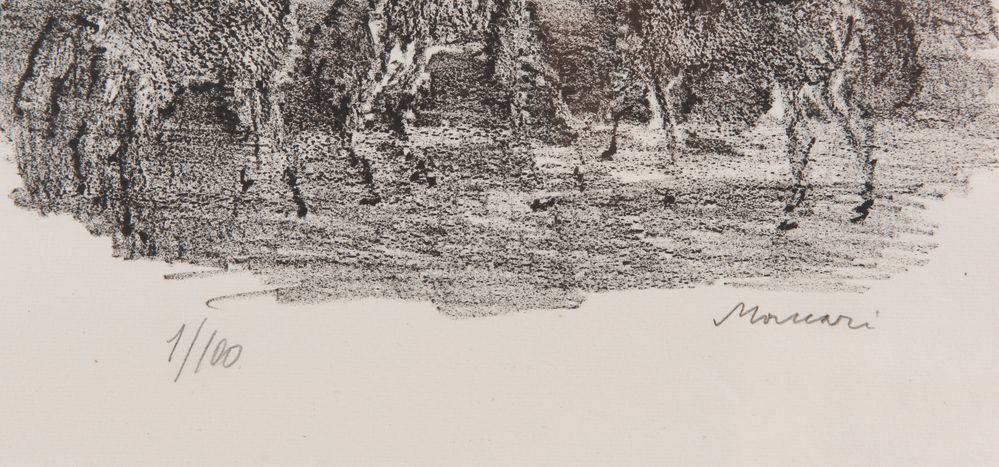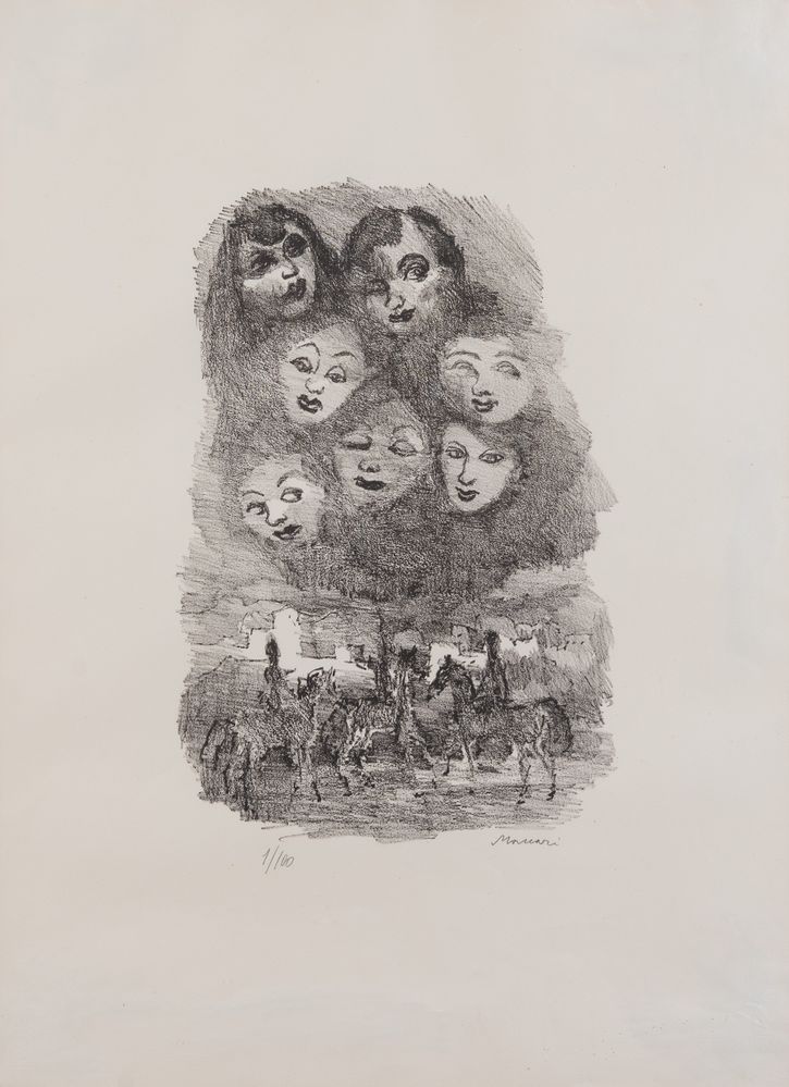 MINO MACCARI (Siena 1898 - Roma 1989) "Senza titolo". Litografia a colori su carta. Foglio: cm 65x48. Opera firmata in basso a destra Maccari. Reca numeri di tiratura in basso al sinistra 1/100.