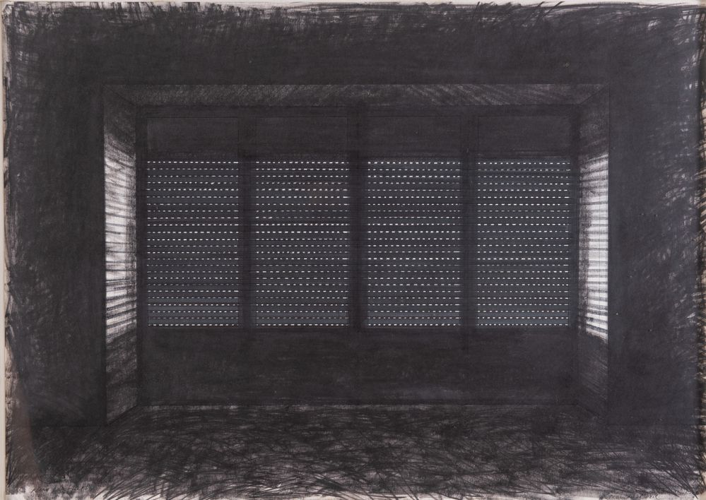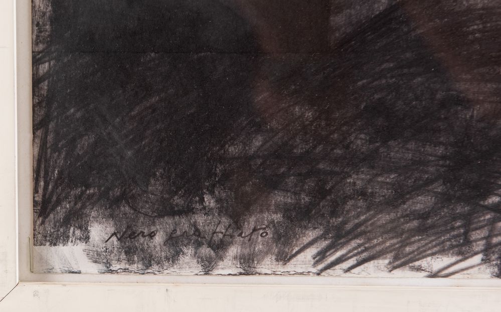 ADRIANO ALTAMIRA (Milano 1947) "Finestra", 1981. Tecnica mista su carta. Cm 50x70. Opera firmata e datata in basso a destra Adriano Altamira 1981. Reca scritta in basso a sinistra Nero graffiato. Al retro reca etichetta della Galleria Studio G7, Bologna.