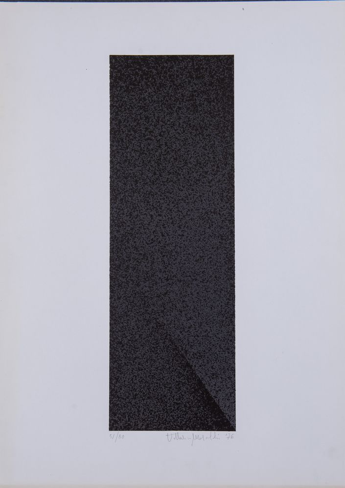 Pittore anonimo del XX secolo. "Senza titolo", 1976. Litografia a colori su carta. Lastra: cm 53x17,5; foglio: cm 69x49,5. Opera firmata e datata in basso a destra. Reca numeri di tiratura in basso a sinistra 51/80.
