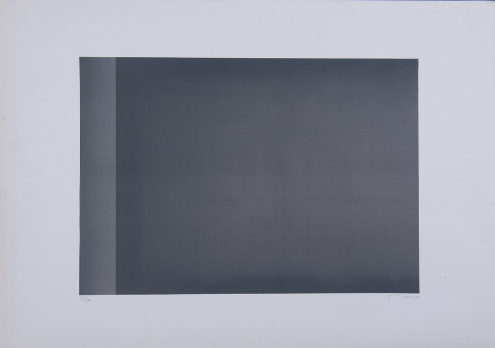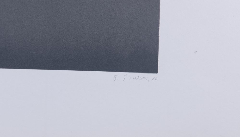 GIOVANNI PINTORI (Tresnuraghes 1912 - Milano 1999) "Senza titolo", 1976. Litografia a colori su carta. Lastra: cm 33,5x48; foglio: cm 50x70. Opera firmata e datata in basso a destra G. Pintori '76. Reca numeri di tiratura in basso a sinistra 33/80.