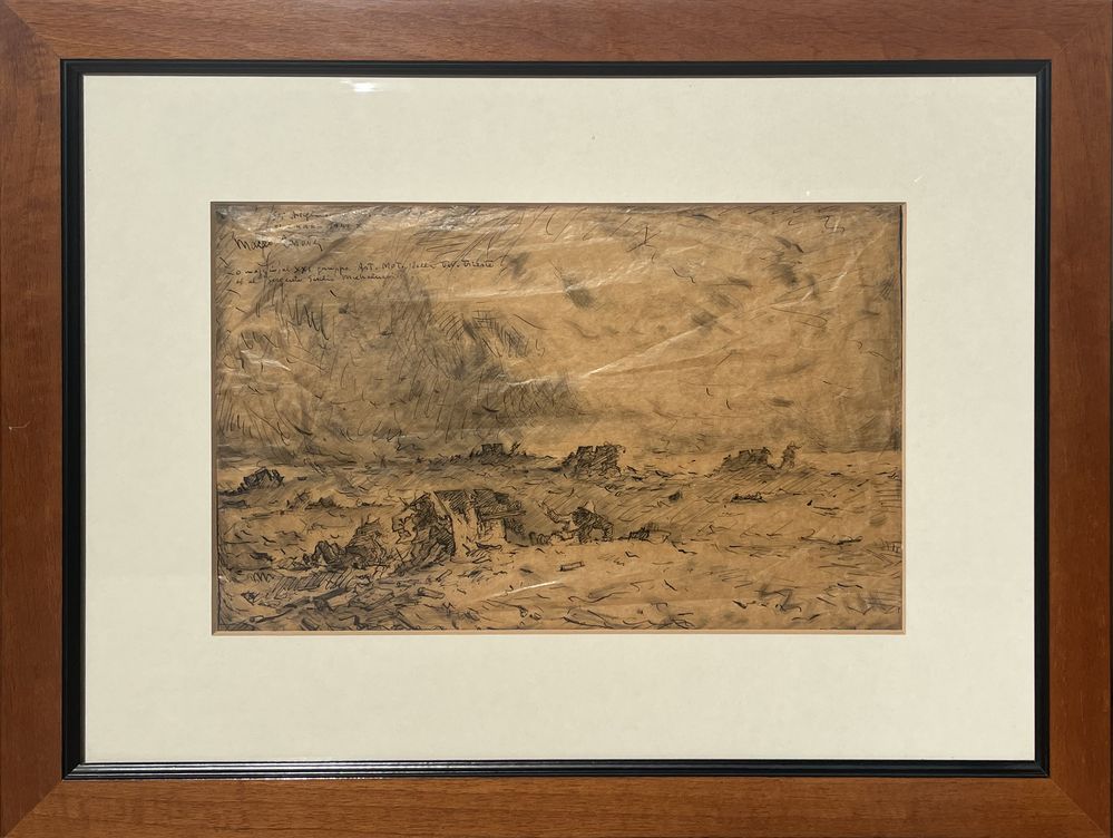 MACEO CASADEI (Forlì 1899 - 1992) "Sei artiglieri a Sidi-Rezech", 1941. Disegno su carta. Cm 22x35. Opera intitolata, datata e firmata in baso a sinistra Sei artiglieri a Sidi-Rezech, dicembre 1941 XX, Maceo Casadei.