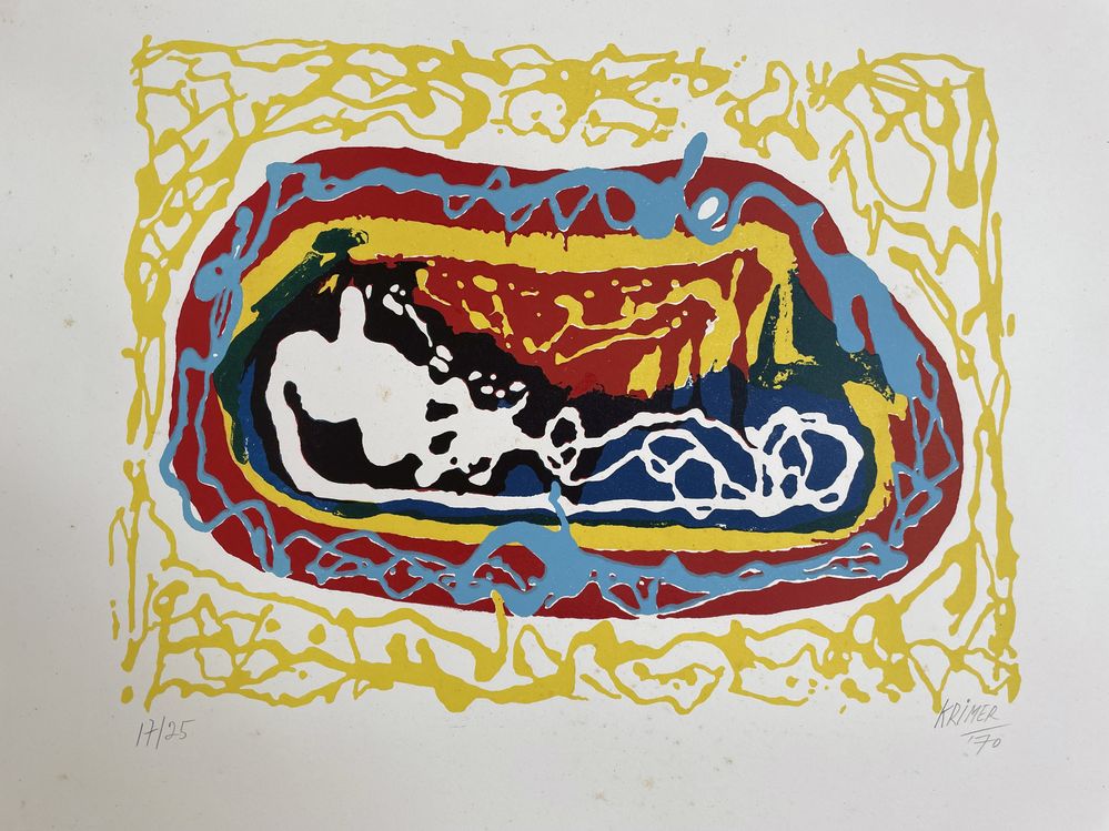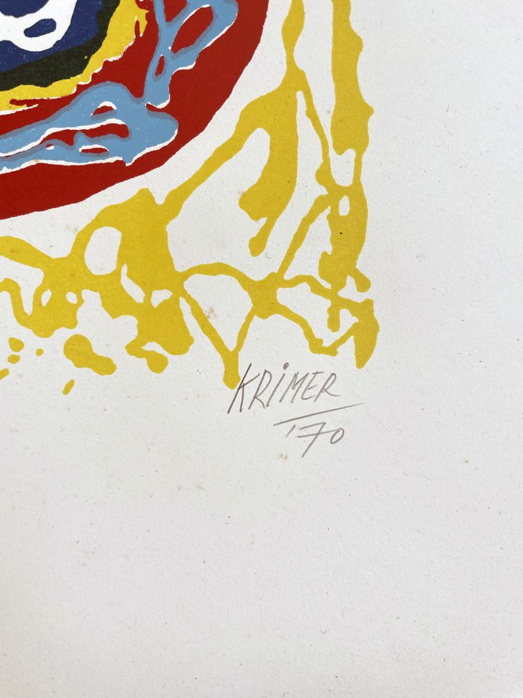 KRIMER (Perugia 1908 - Viareggio 1977) "Senza titolo", 1970. Litografia a colori su carta. Foglio cm 49,8x69,8. Opera firmata e datata in basso a destra Krimer '70. Reca numeri di tiratura in basso a sinistra 17/25.