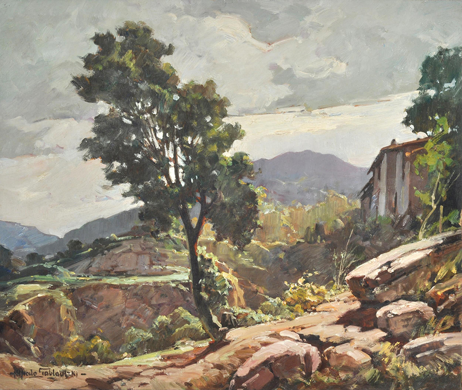 Sablautzky Alfredo ( Prussia 1921 - Napoli 2003) Paesaggio di campagna olio su tavola, cm 50x60 firmato in basso a sinistra: Alfredo Sablautzky