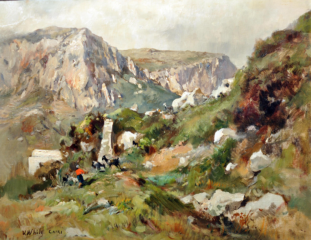 White Valentino (Positano,SA 1909 - 1986) Capri olio su tela cm 56x70 firmato e iscritto in basso a sinistra: V. White Capri