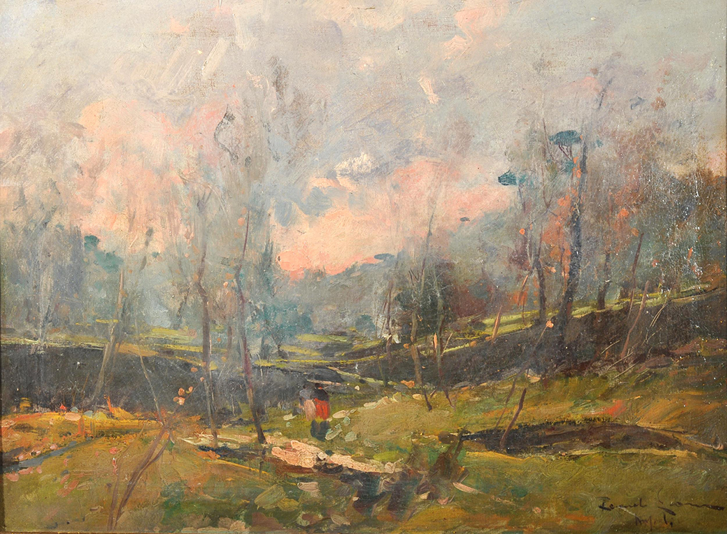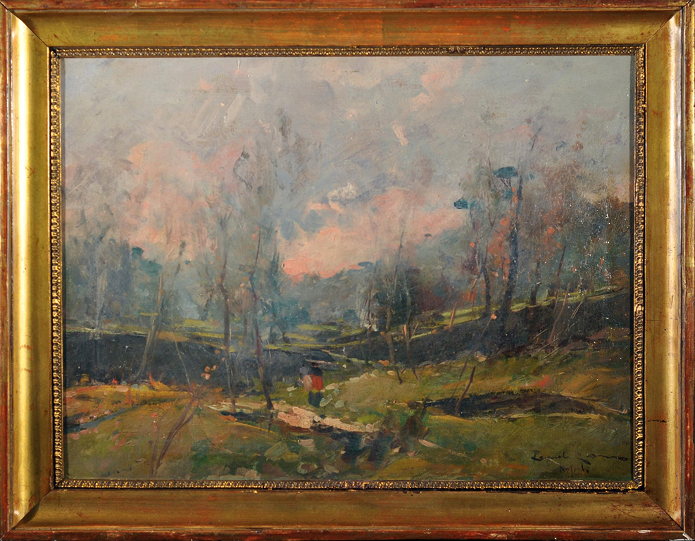 Leone Romolo (Napoli 1890 - 1964) Paesaggio olio su tela, cm 30x40 firmato e iscritto in basso a destra: Romolo Leone Napoli