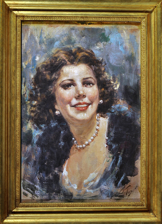 Toro Attilio (Napoli 1892 - Portici, NA 1982) Ritratto femminile olio su tavola, cm 45,5x31 firmato in basso a destra: A. Toro
