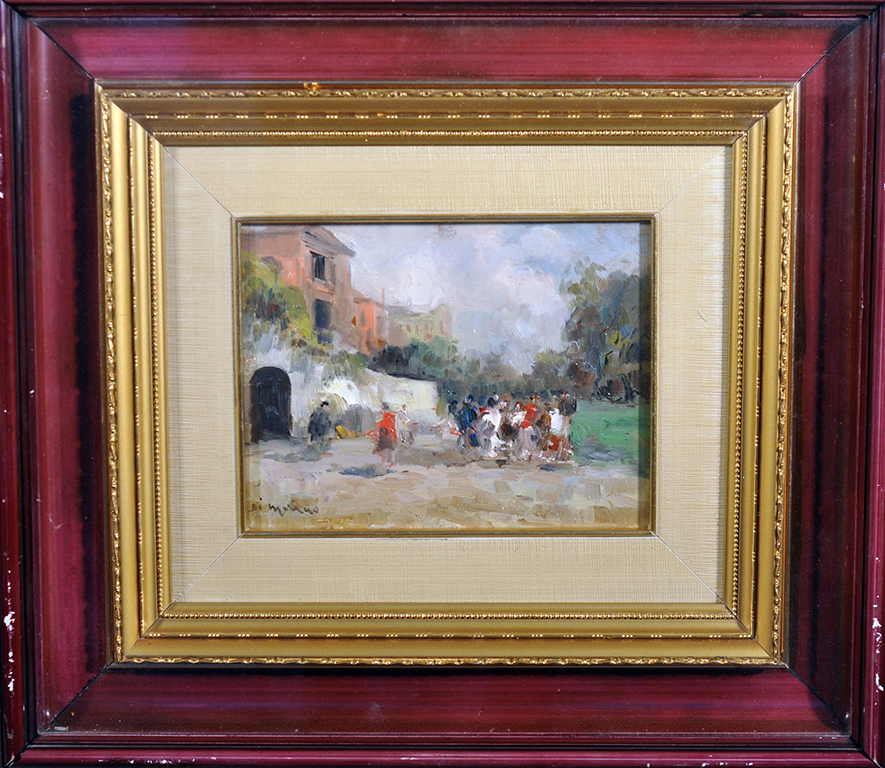 Di Marino Francesco (Napoli 1892 - 1954) Al casale olio su tavola, cm 19x24 firmato in basso a sinistra: Di Marino