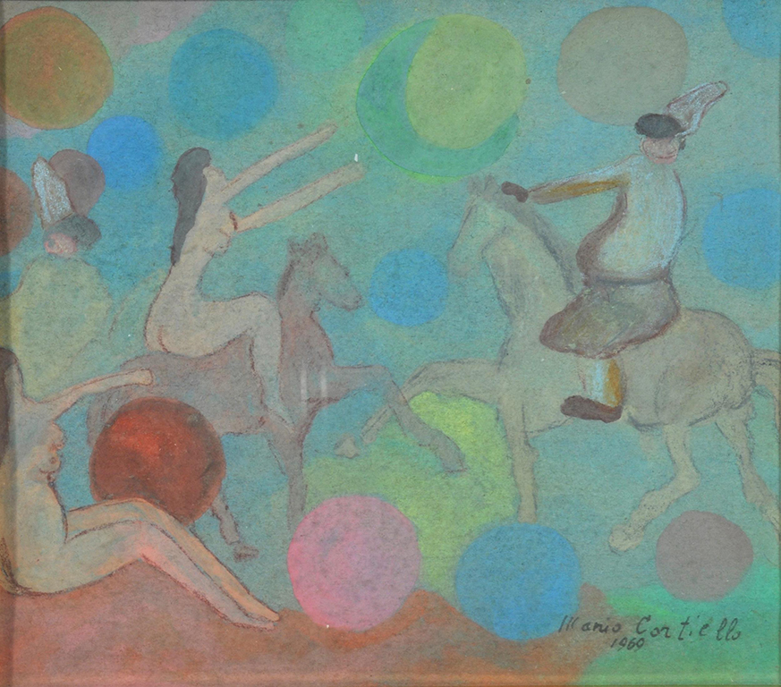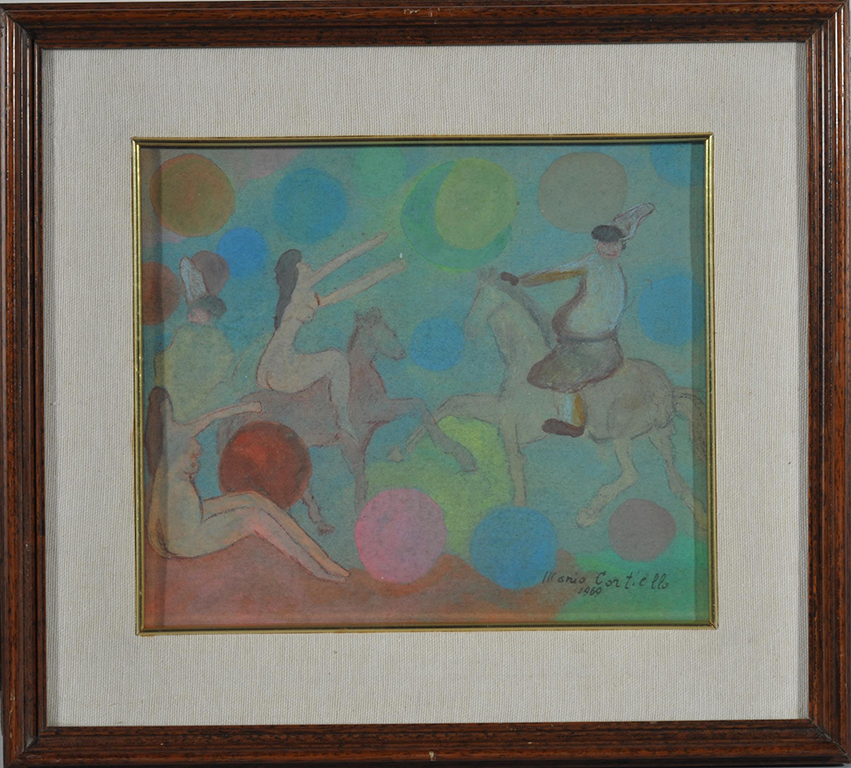 Cortiello Mario (Napoli 1907 - S.Sebastiano al Vesuvio, NA 1981) Pulcinella tecnica mista su carta, cm 21x25,5 firmato edatato in basso a destra: Mario Cortiello 1969