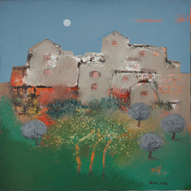 Bacosi Manlio (Perugia 1921 - 1998) Paesaggio umbro olio su tela, cm 60x60 firmato in basso a destra: Bacosi