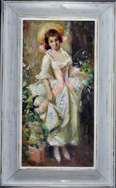 Rispoli Franco (Napoli 1921-1989) Damina olio su masonite cm 60x30 firmato in basso a sinistra: F. Rispoli