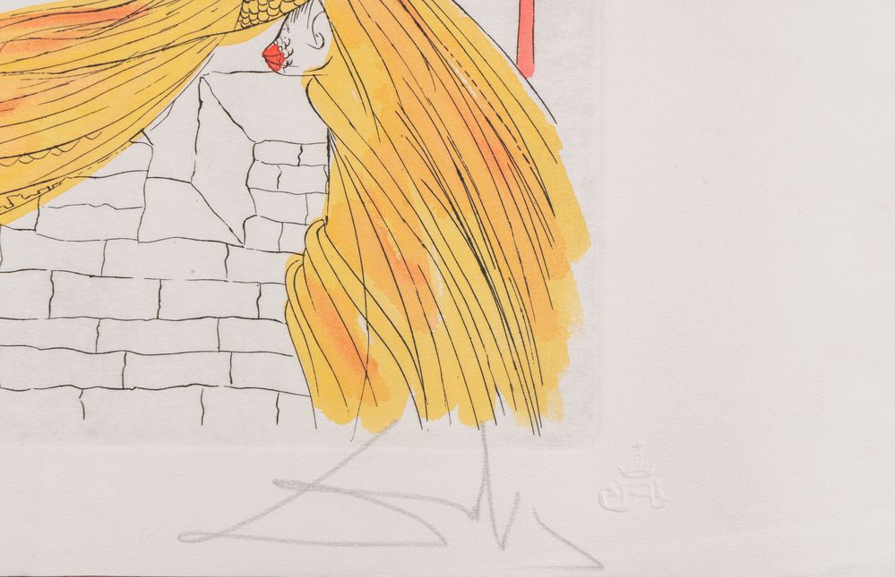 SALVADOR DALÍ (Figueres 1904 - 1989) "Helen and the Trojan horse". Litografia acquerellata a colori su carta. Foglio: cm 55,5x75; lastra: cm 46,5x51.5. Opera firmata in basso a destra Dalì. Reca numeri di tiratura in basso a sinistra 29/250. Reca timbro in basso a sinistra Gravure Authentique de S. Dalì. Reca timbro in basso a destra. Al retro reca etichetta di autenticità del Grupo Quince, Madrid.