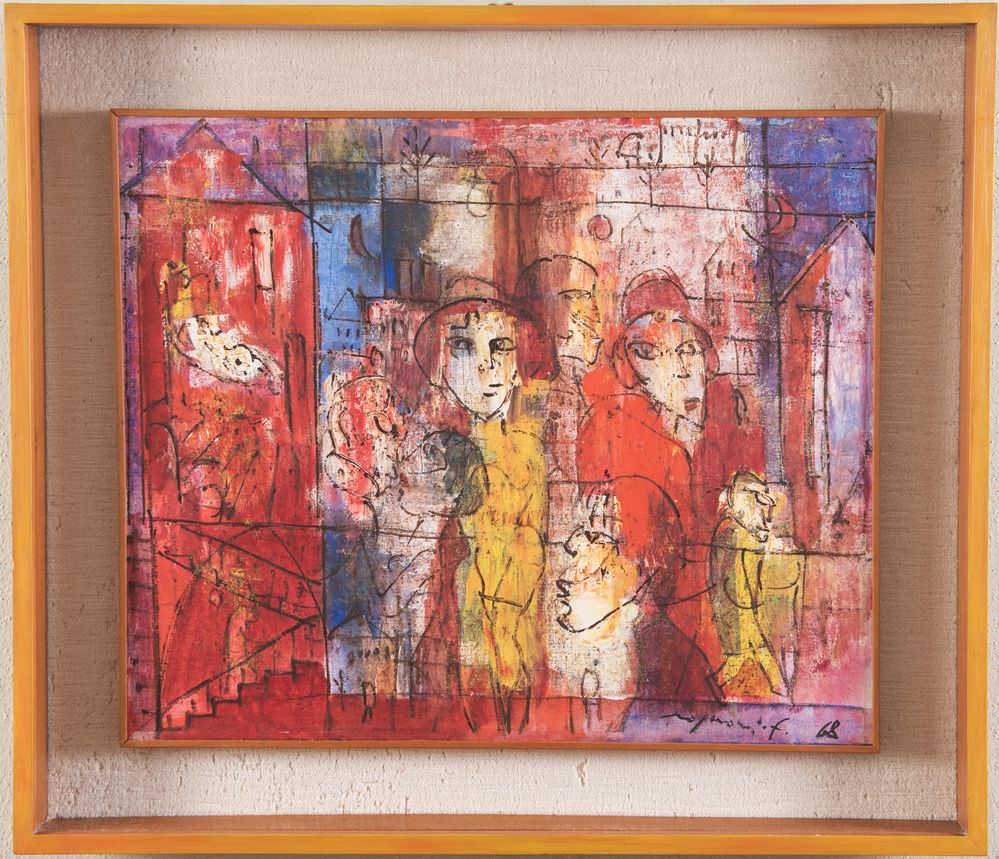 FRANCO ROGNONI (Milano 1913 - 1999) "Città", 1968. Olio su tela. Cm 46x55....