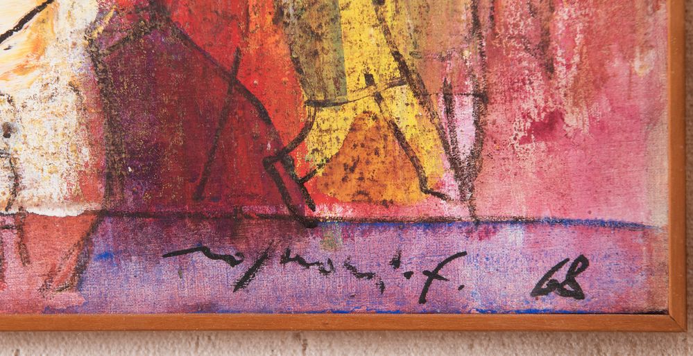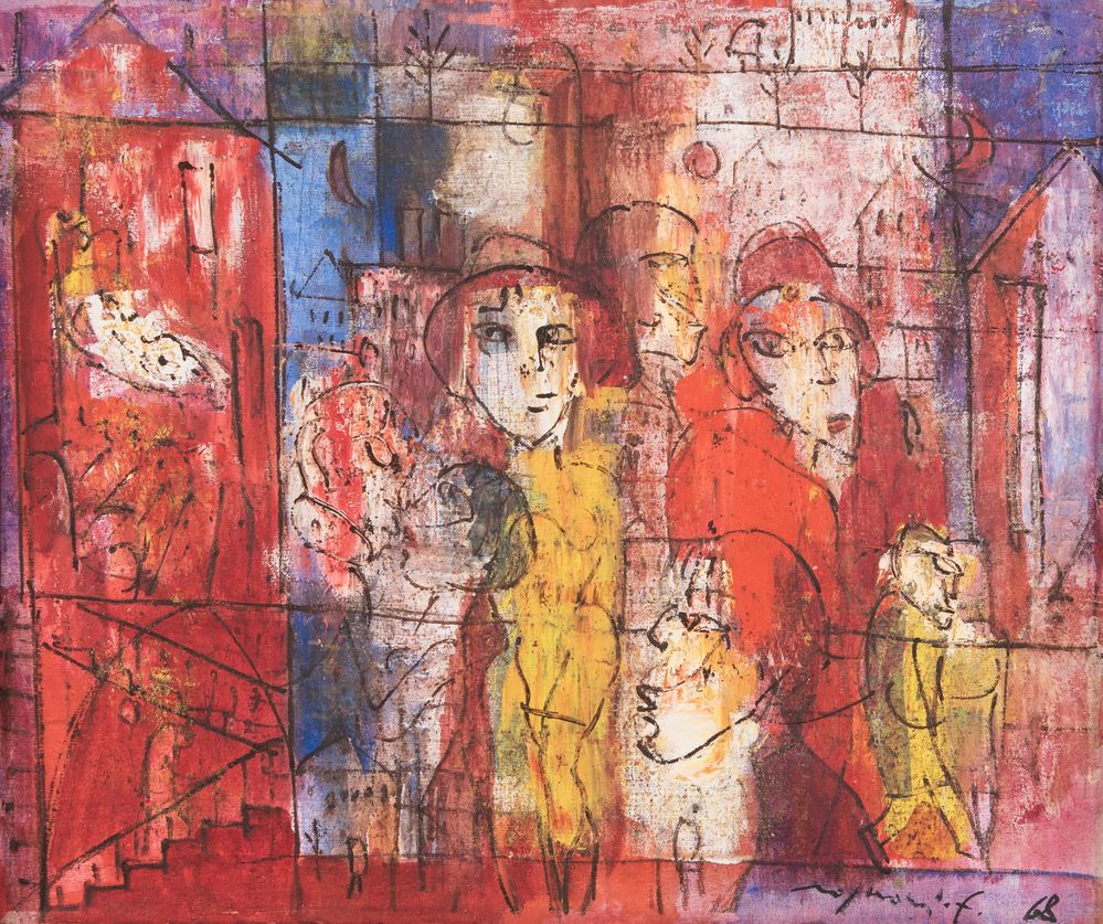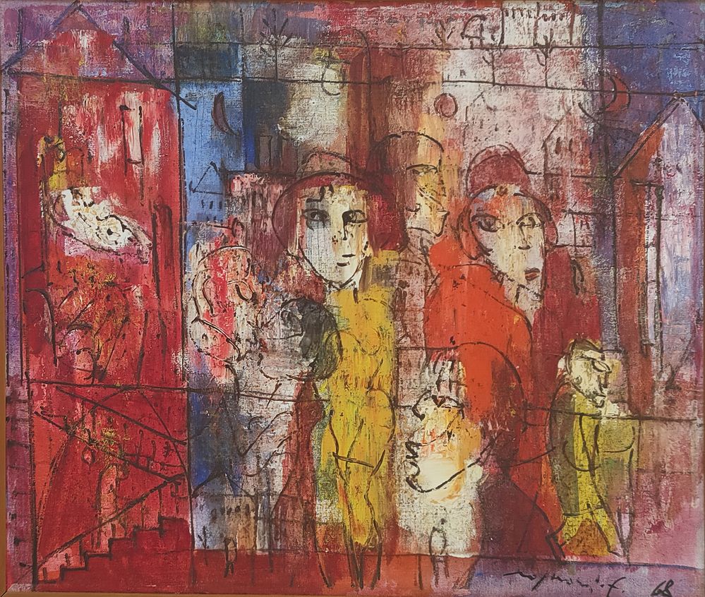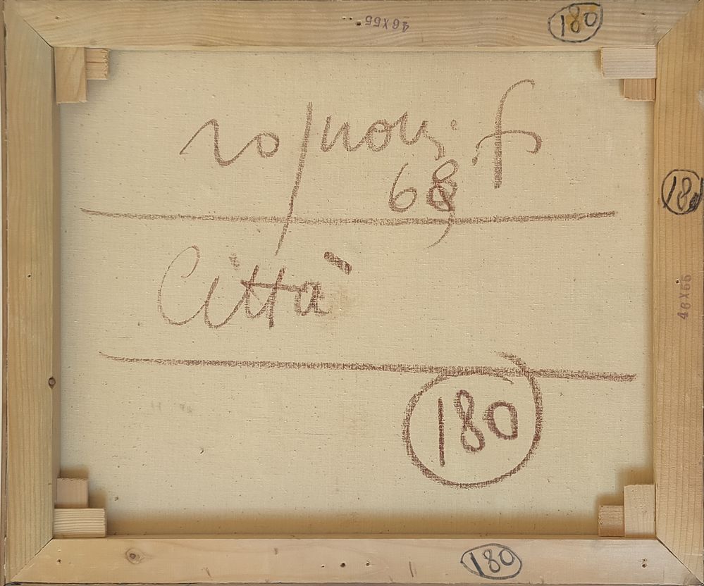 FRANCO ROGNONI (Milano 1913 - 1999) "Città", 1968. Olio su tela. Cm 46x55. Opera firmata e datata in basso a destra Rognoni F. '68. Al retro opera firmata, intitolata e datata Rognoni F, Città, '68. Al retro reca scritta 180.