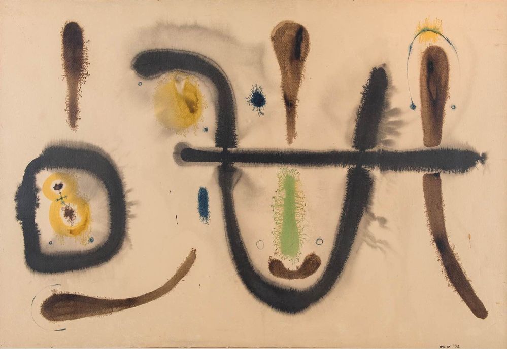 GIO' POMODORO (Orciano di Pesaro 1930 - Milano 2002) "Composizione", 1954. Tecnica mista su carta. Cm 66,5x98. Opera firmata e datata in basso a destra Giò '54. Provenienza: importante collezione privata.