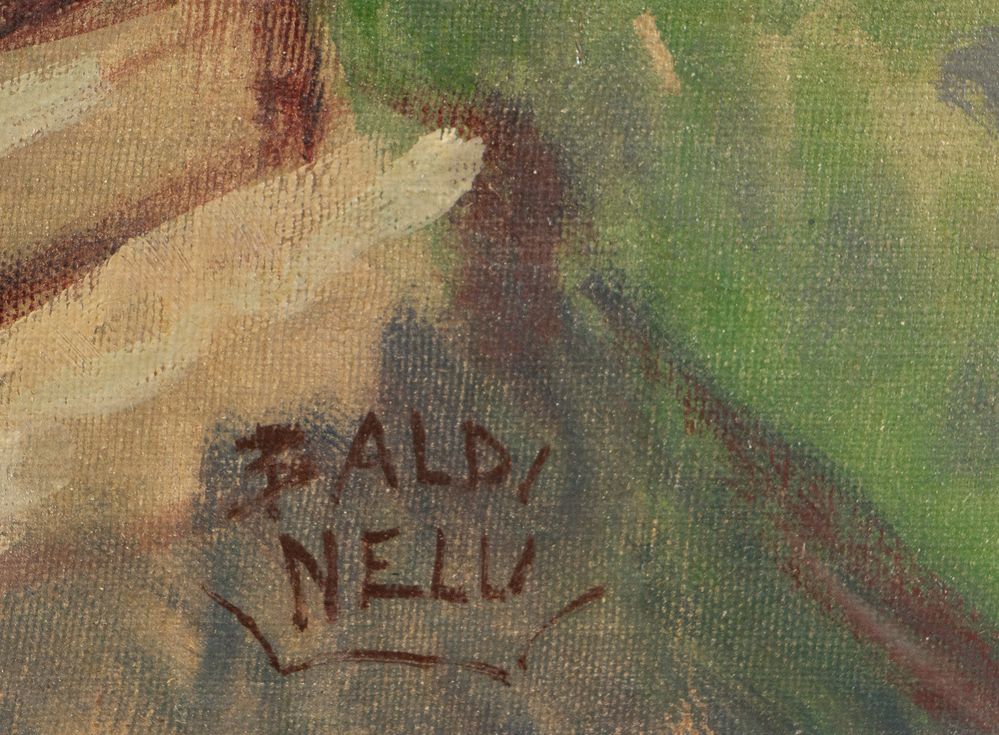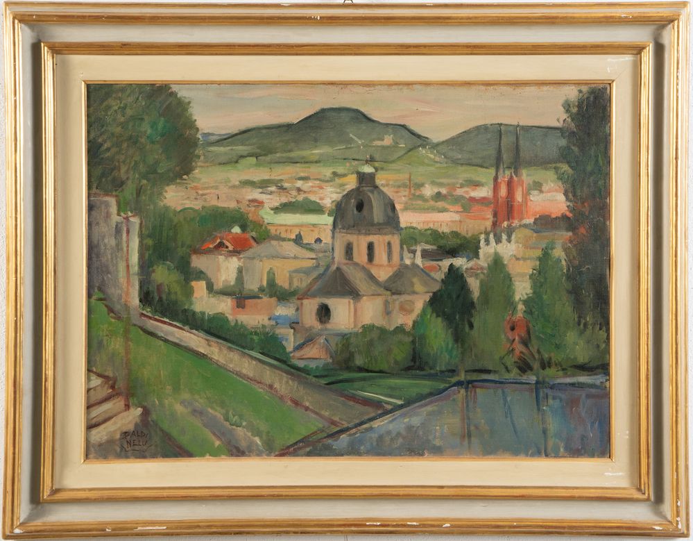 ARMANDO BALDINELLI (Ancona 1908 - Johannesburg 2002) "Belvedere". Olio su tela. Cm 56x78. Opera firmata in basso a sinistra Baldinelli.