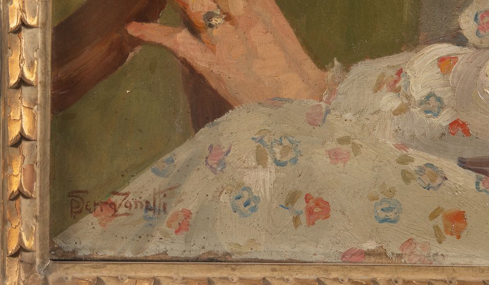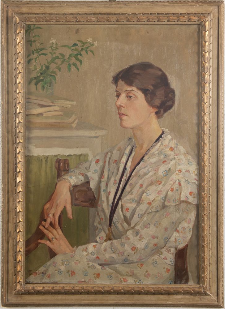 PAOLA SERRA ZANETTI (Budrio 1886 -1963) "Ritratto". Olio su tela. Cm 90x60. Opera firmata in basso a sinistra P Serra Zanetti.