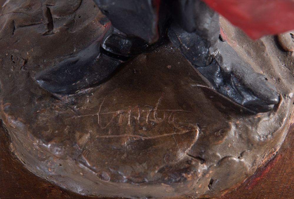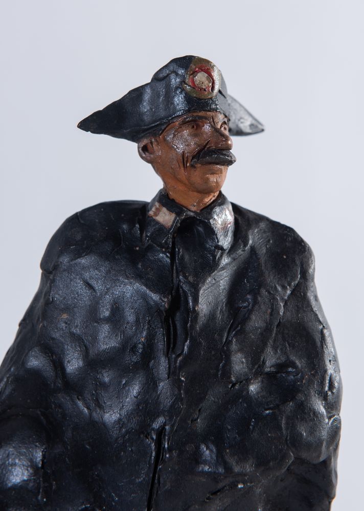 CLETO TOMBA (Castel San Pietro Terme 1898 - Bologna 1987) "Carabiniere". Scultura in terracotta policroma. Cm 28x15,5x10. Opera firmata alla base Tomba. Opera siglata alla base T.