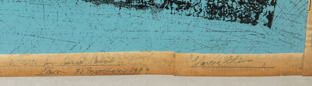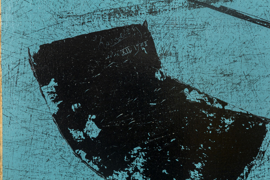 This work was dedicated by Jannis Kounellis in Athens on January 30 1979 to his friend Leonardo Mendrinos a prominent architect and civil engineer as well as a well-known collector of Greek works of art as from a document by Dimitris Papastamos former director of the National Gallery in Athens from 1972 to 1989