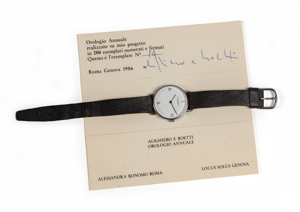 L'orologio annuale è stato realizzato da Alighiero Boetti in collaborazione con Alessandra Bonomo Roma e Galleria Locus Solus Genova
