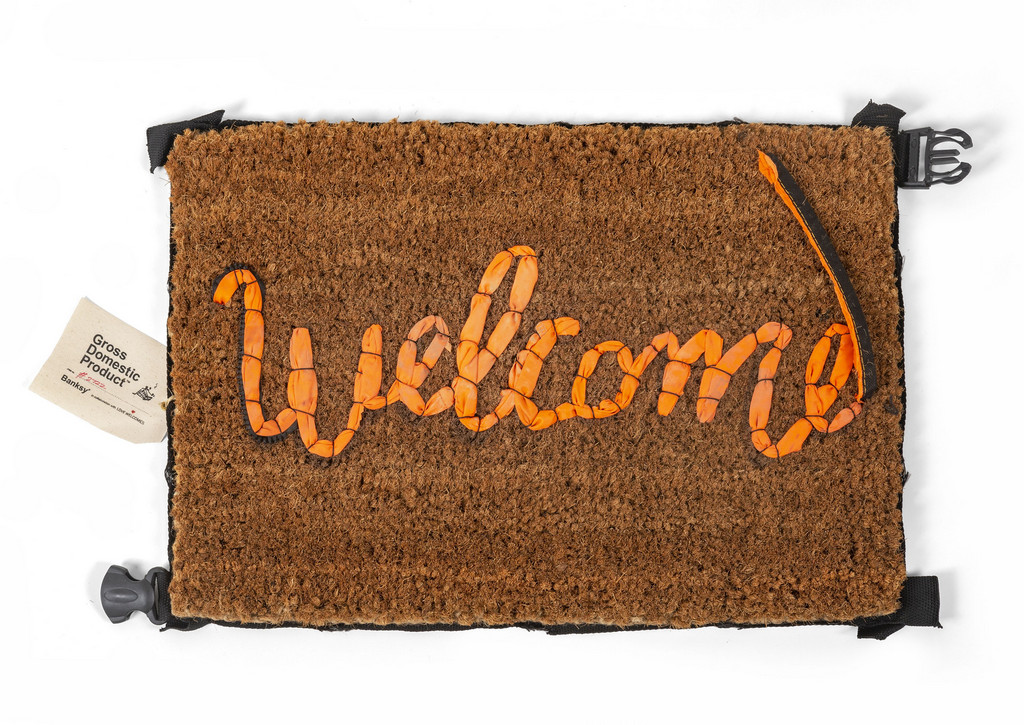 To realize these carpets Banksy collaborated with the 'Love Welcomes' organization which works with women held in camps in Greece