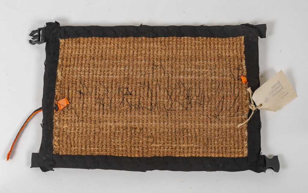 tappeto fatto a mano con giubbotti di salvataggio dei migranti abbandonati sulle spiagge del Mediterraneo