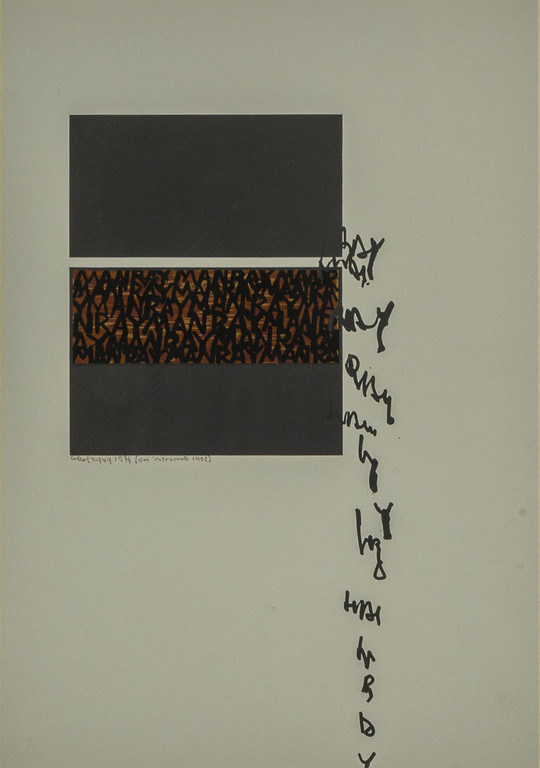 marker pen on silkscreen on cardboard 18 89x12 99 in