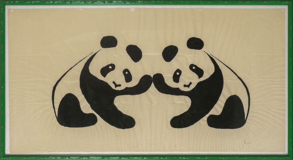 ink on rice paper in a faux bamboo frame painted by the artist 31 49x51 18 in